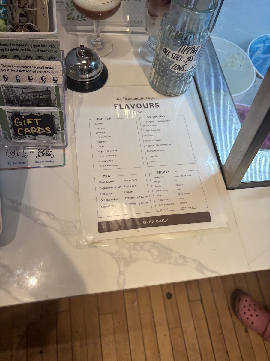 The Belfountain Cafe’s menu is a delightful blend of comfort and creativity, offering both indulgent treats and satisfying savory options. The standout Iced Cookie Butter Latte perfectly balances rich coffee with the creamy, spiced sweetness of cookie butter, making it an irresistible pick-me-up. For dessert, the Banana Boat Icecream impresses with its generous portion and playful presentation, a nostalgic yet elevated twist on a classic favorite. Breakfast and brunch lovers will find the Everything Bagel with Cream Cheese a simple yet satisfying choice, with its fresh, toasted bagel and perfectly spread cream cheese delivering a classic flavor combination done exceptionally well. Each dish reflects the cafe’s attention to quality ingredients and thoughtful execution, making every bite feel intentional and comforting. Whether stopping by for a casual coffee, a sweet treat, or a light brunch, the menu at The Belfountain Cafe offers a charming and flavorful experience that consistently delights.